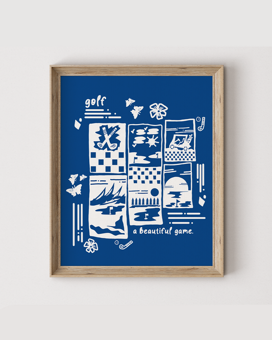 Hand-drawn posters that blend art, golf, and storytelling into one frame.