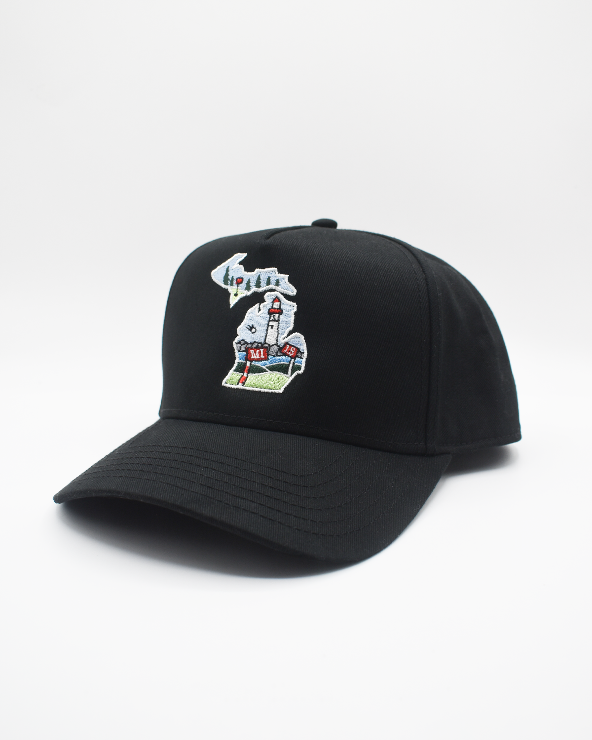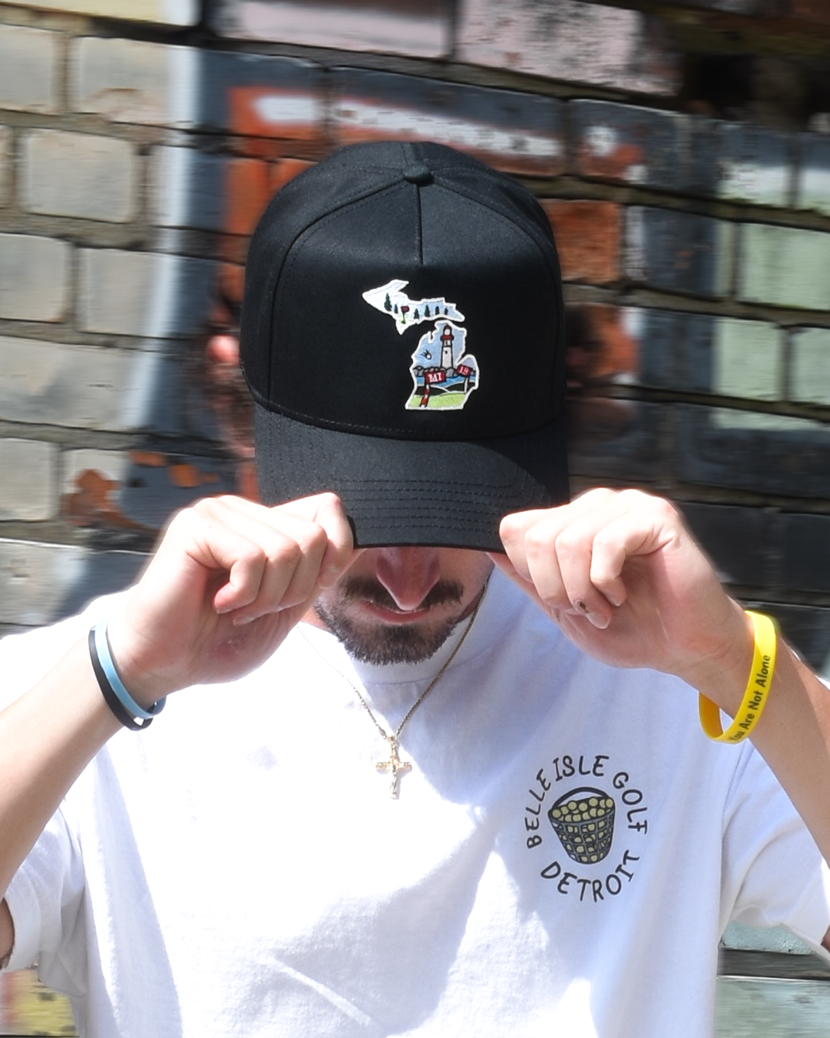 This hat is more than a silhouette — it’s a stitched-up story of Michigan pride. A bold collaboration between Rossi Golf Co. and Colt Golf, it captures the heart of the state with every thread: from the pines of the U.P. to the lakefront lighthouses and rolling fairways downstate.