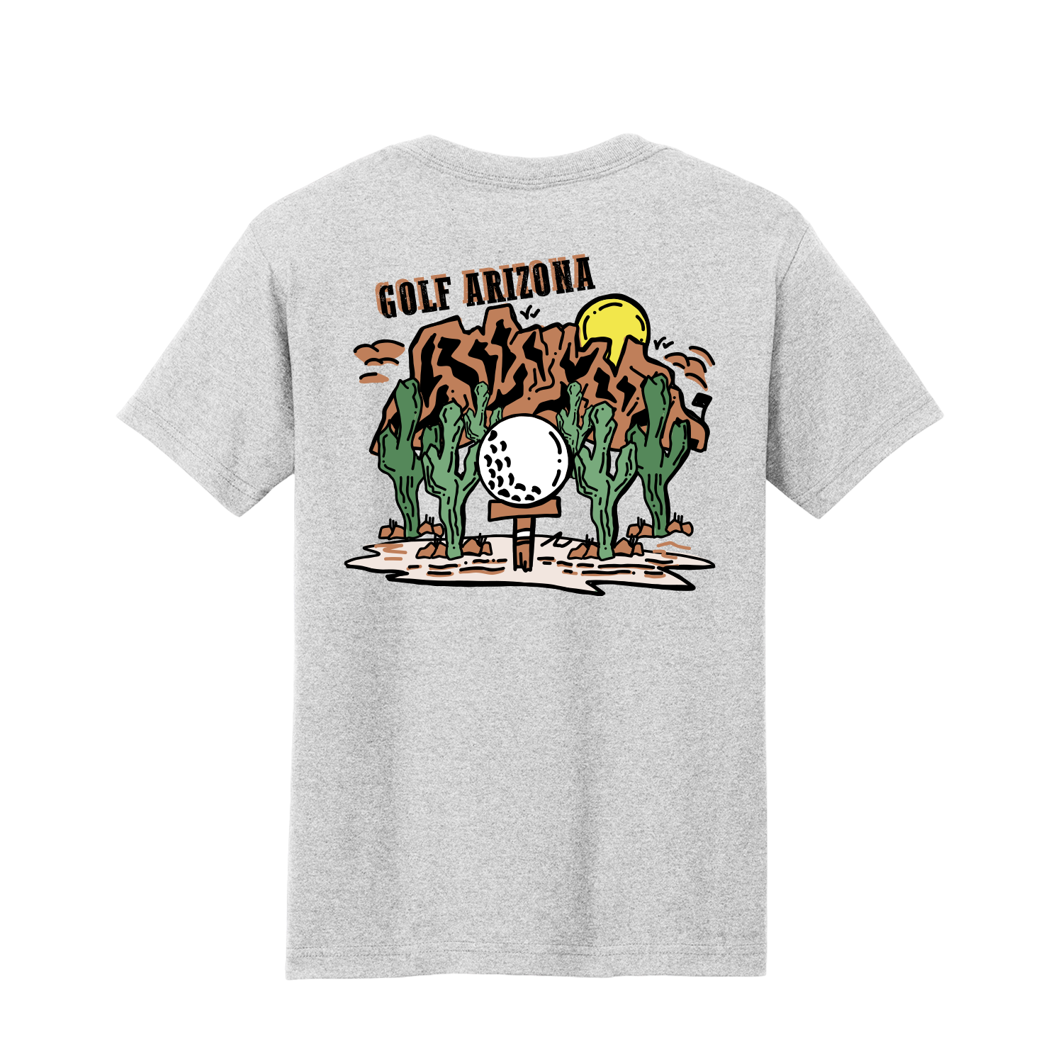 Featuring a minimalist design of towering cacti and rugged Arizona mountains, this shirt blends natural beauty with golf culture.