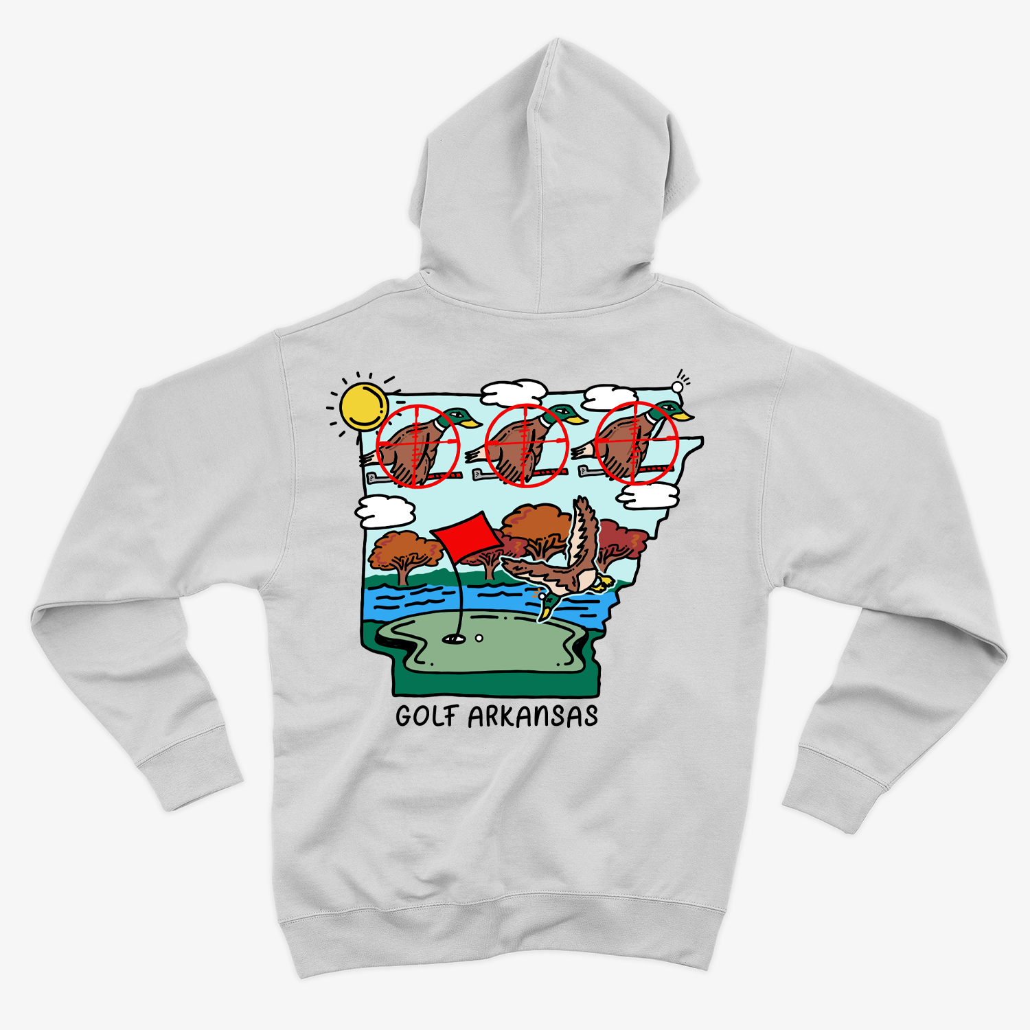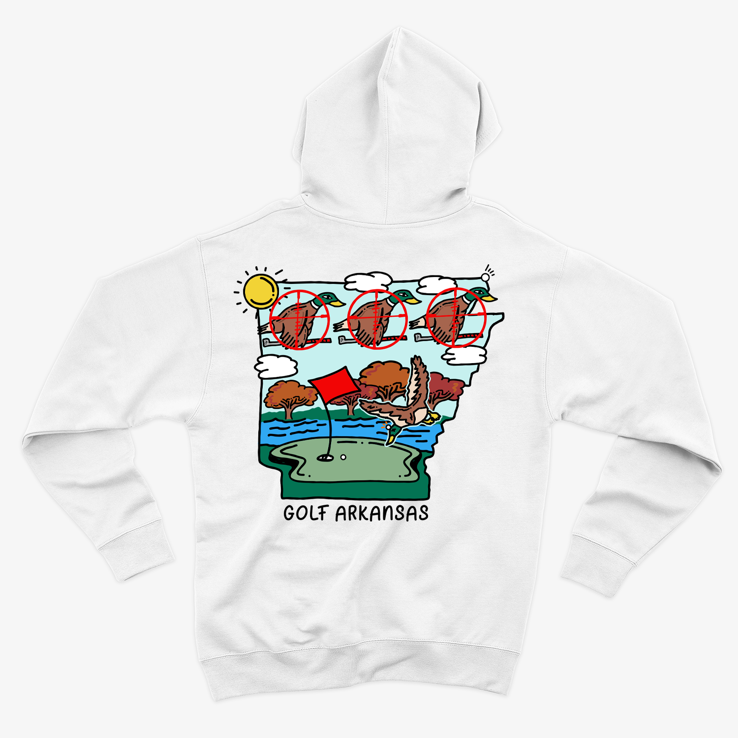 This Arkansas hoodie blends the spirit of the hunt with the love of golf, a nod to early mornings in the blind and late afternoons on the course. Inspired by the rich duck hunting heritage of the Natural State, it's for those who trade in their clubs for camo when the season's right — and sometimes carry both in the truck.