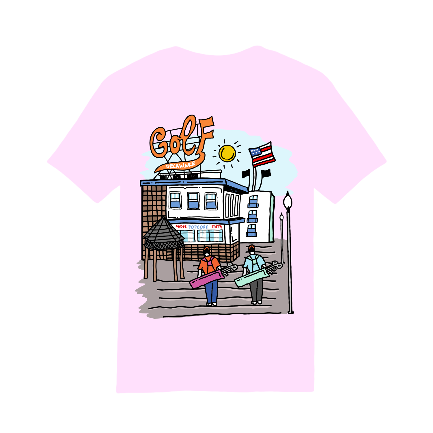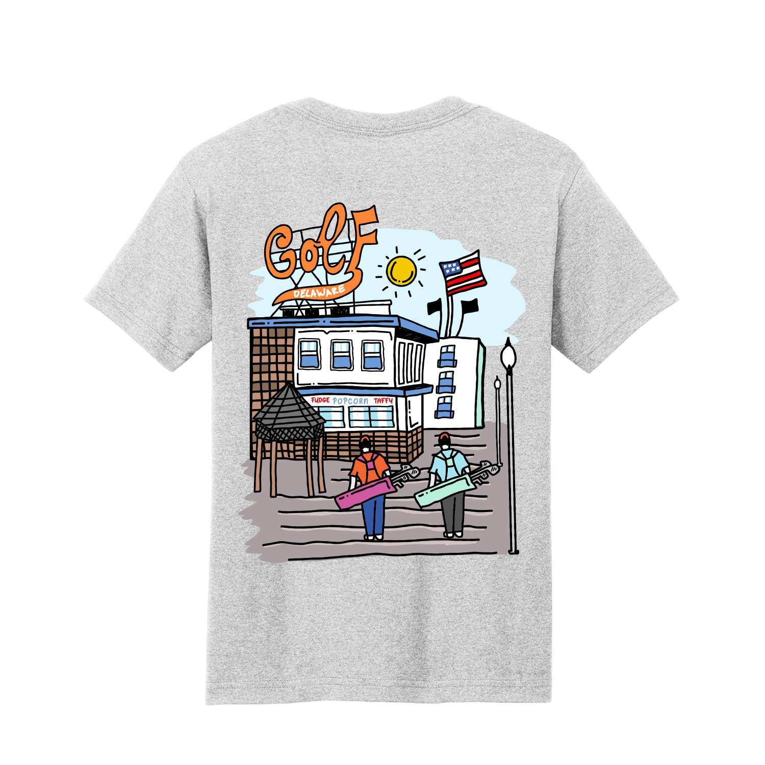 Inspired by Rehoboth Beach and the iconic Dolles sign, this design blends Delaware boardwalk energy with golf. A nod to saltwater taffy, beach towns, and summer rounds by the coast.