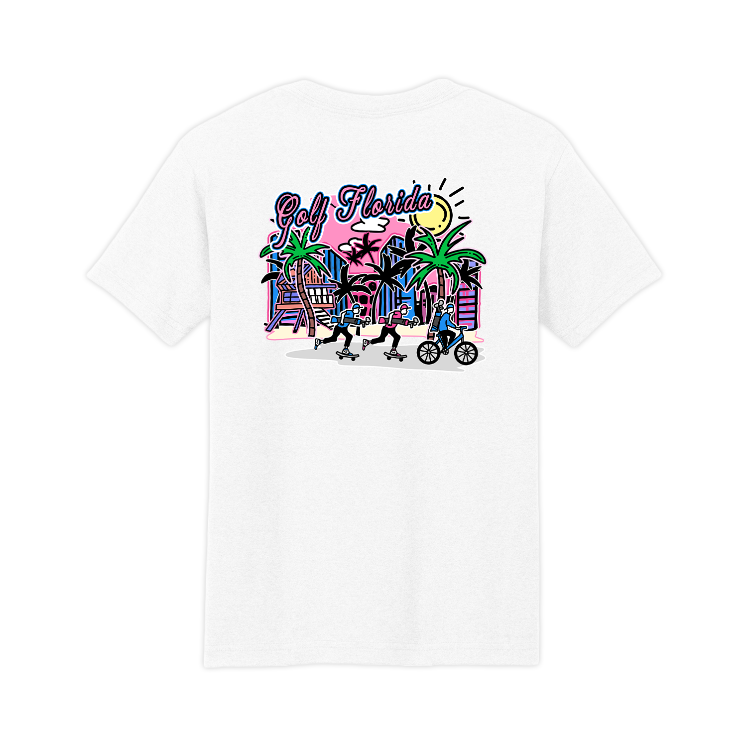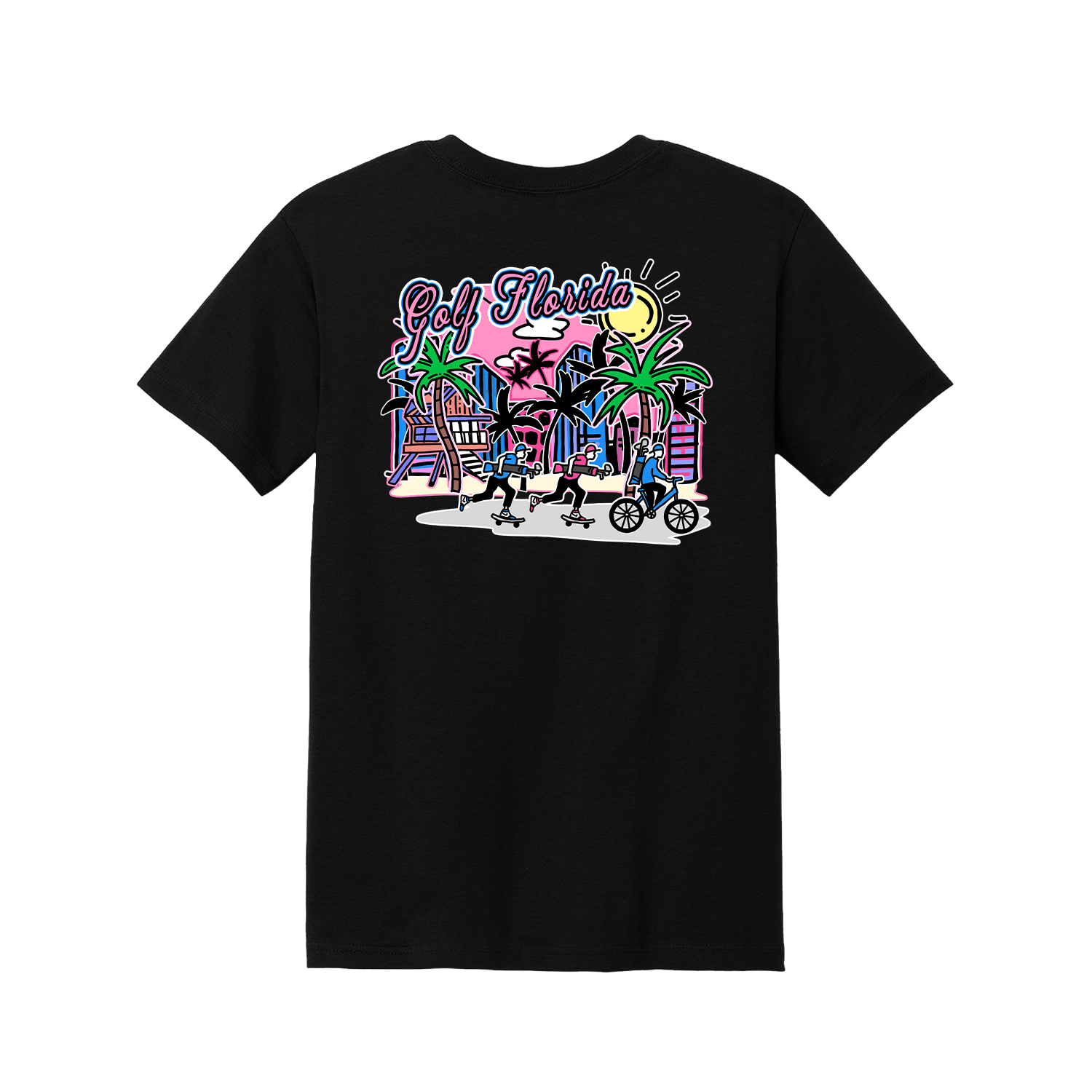 This design captures the electric vibe of Miami Beach — Inspired by the bold colors of Florida and the beachside energy, this tee blends golf with Miami’s street culture.