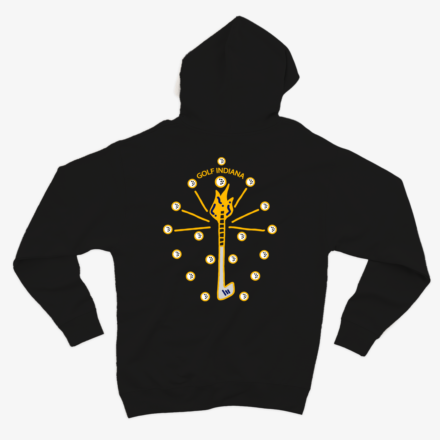 Inspired directly by the Indiana state flag. Featuring the iconic torch of liberty as a golf club surrounded by radiant golf balls, this design blends state heritage with the timeless spirit of the game.