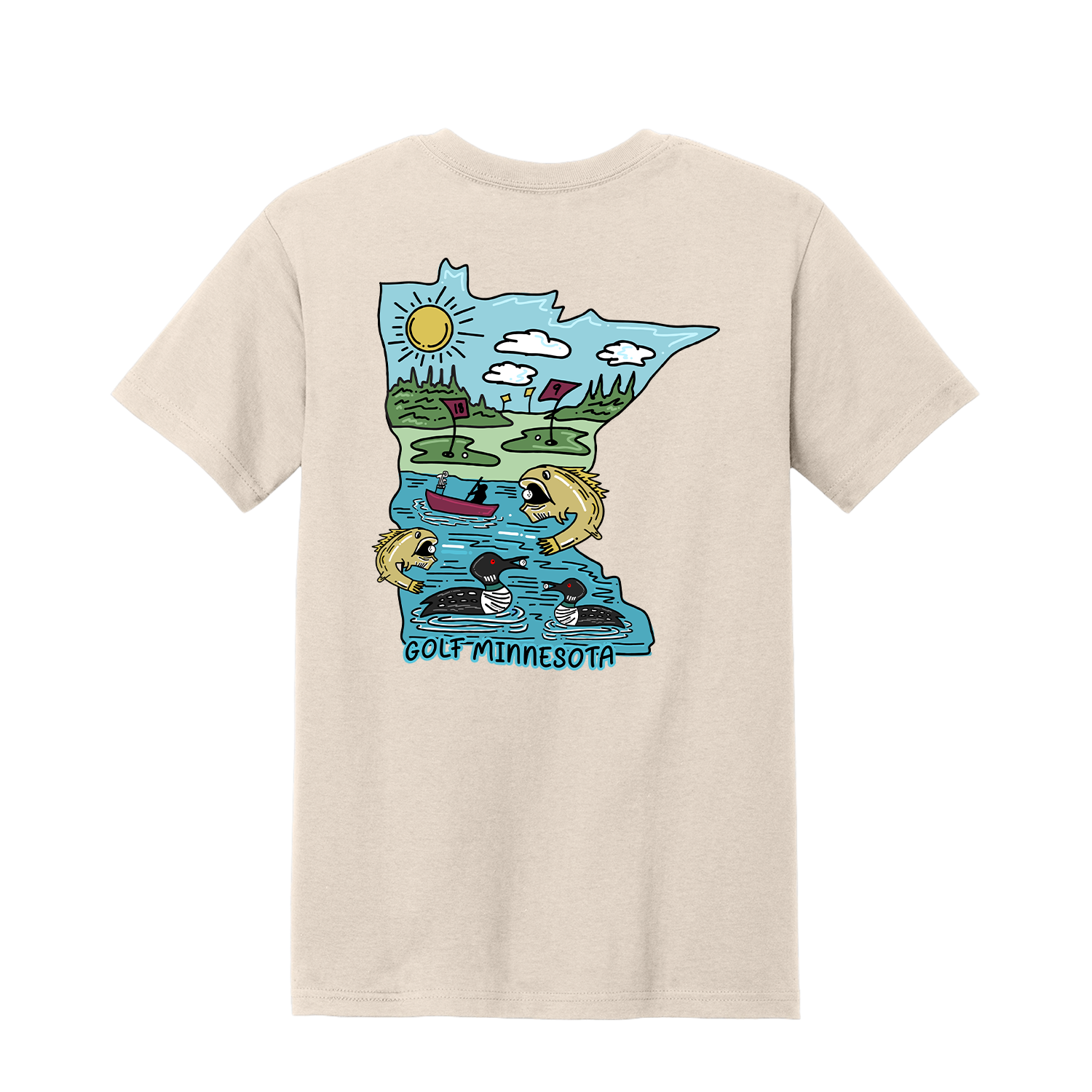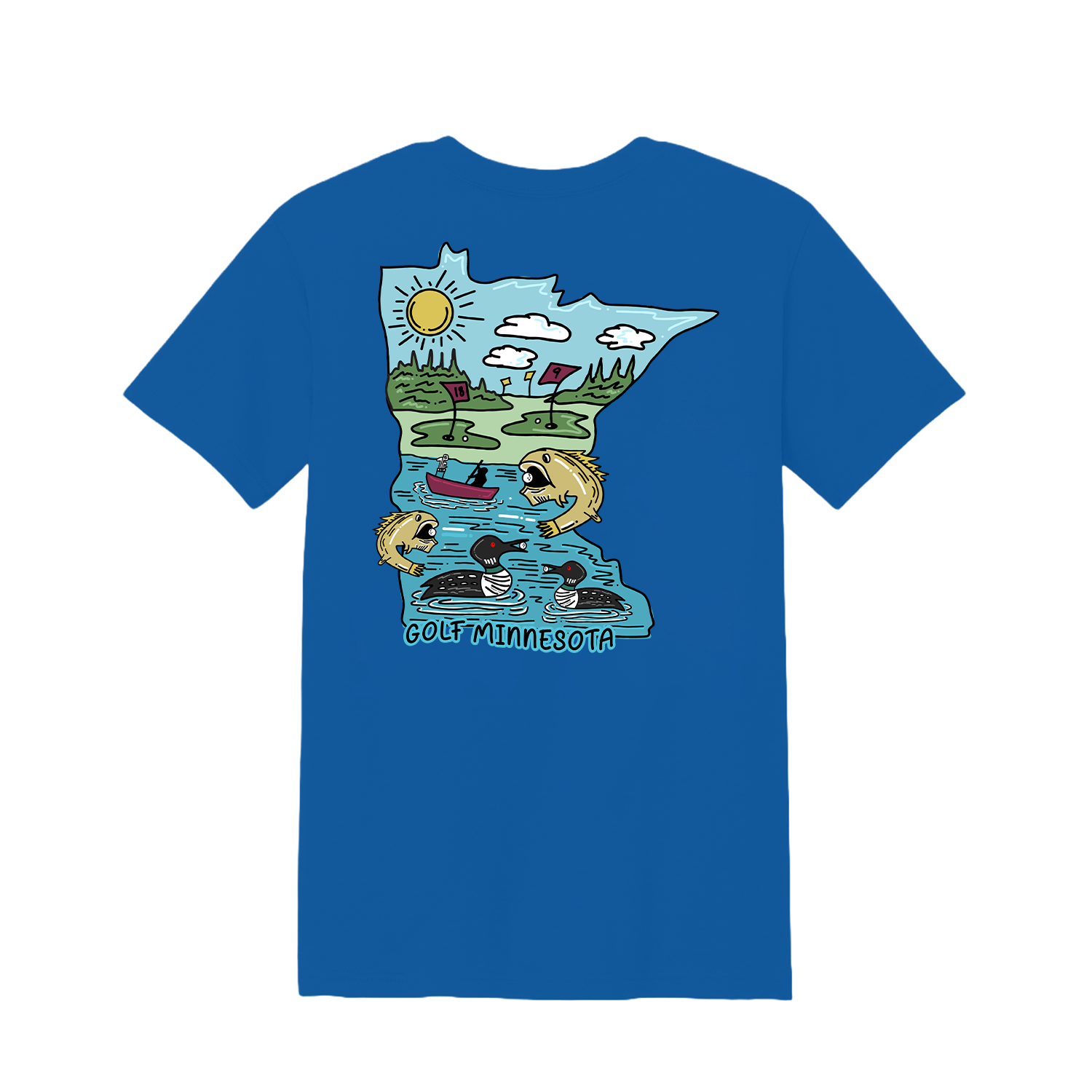 Celebrate the Land of 10,000 Lakes with a hoodie inspired by Minnesota’s outdoor spirit. This design blends golf with the state’s iconic culture—featuring nods to the common loon, walleye fishing, and the Minnesota state silhouette. A perfect balance of sport and nature, it’s made for golfers who carry their love for Minnesota everywhere they play.