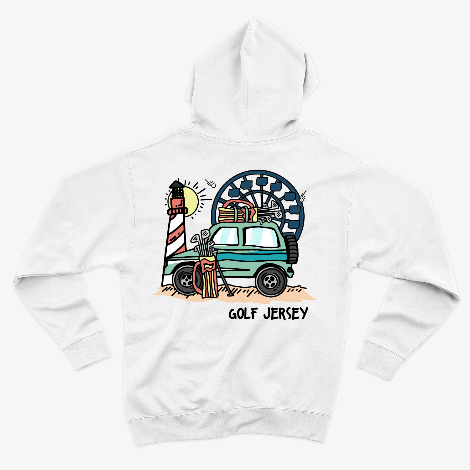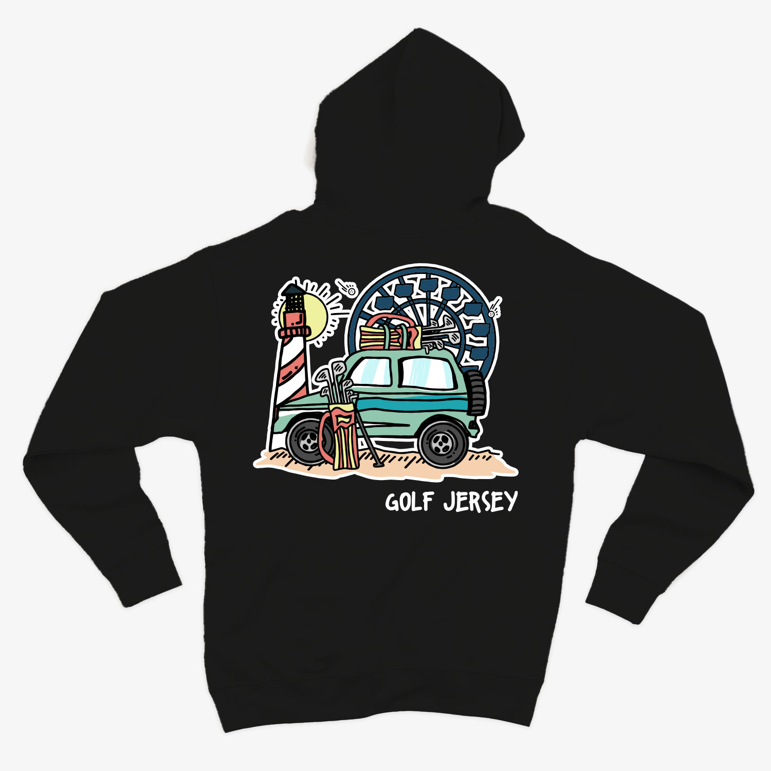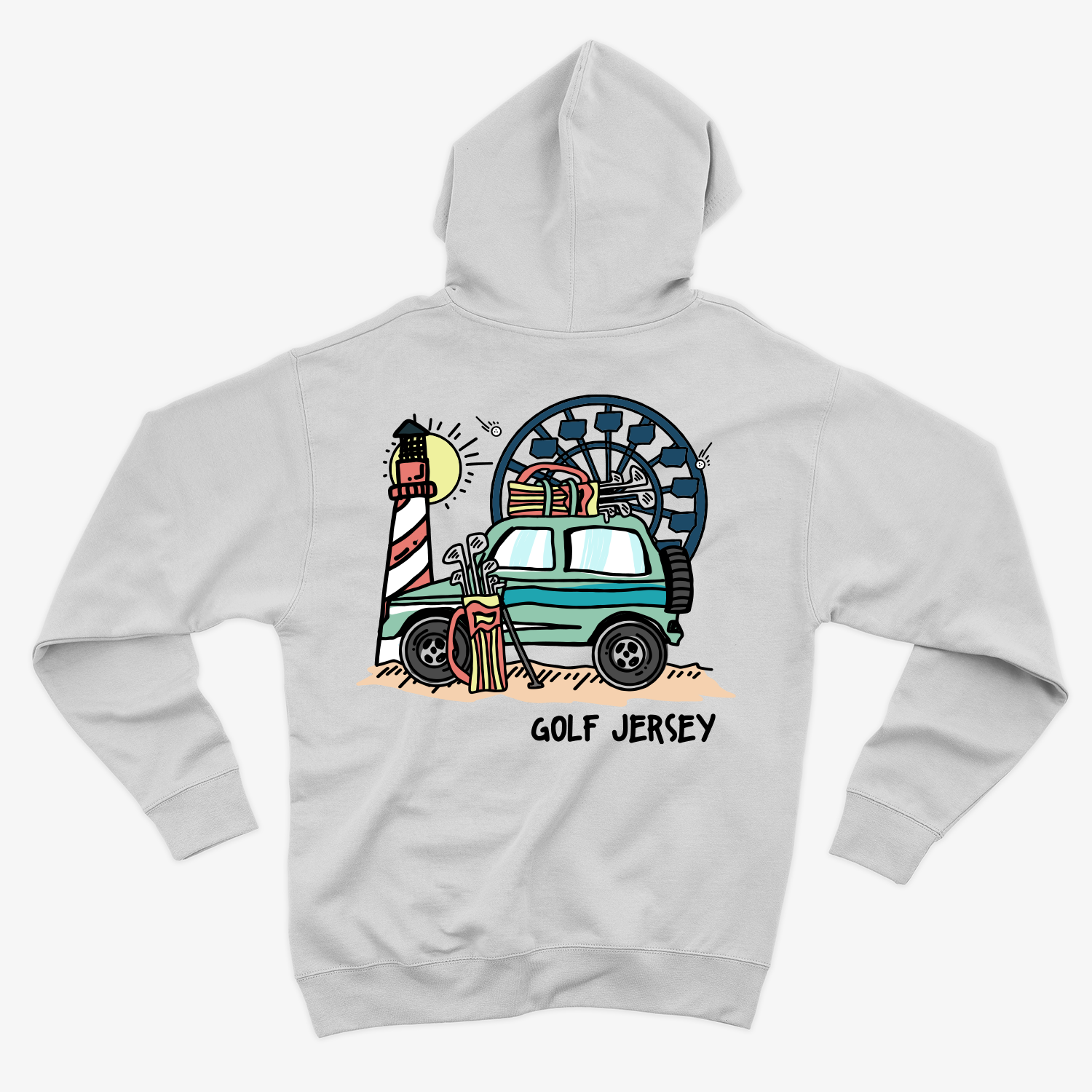 Where the shore meets the course. This hoodie is inspired by the bold, laid-back energy of the Jersey Shore and built for golfers who bring that same vibe to the game. Featuring coastal-inspired colors, relaxed streetwear fit, and subtle golf details, it’s perfect for a round, a boardwalk stroll, or a night out.
