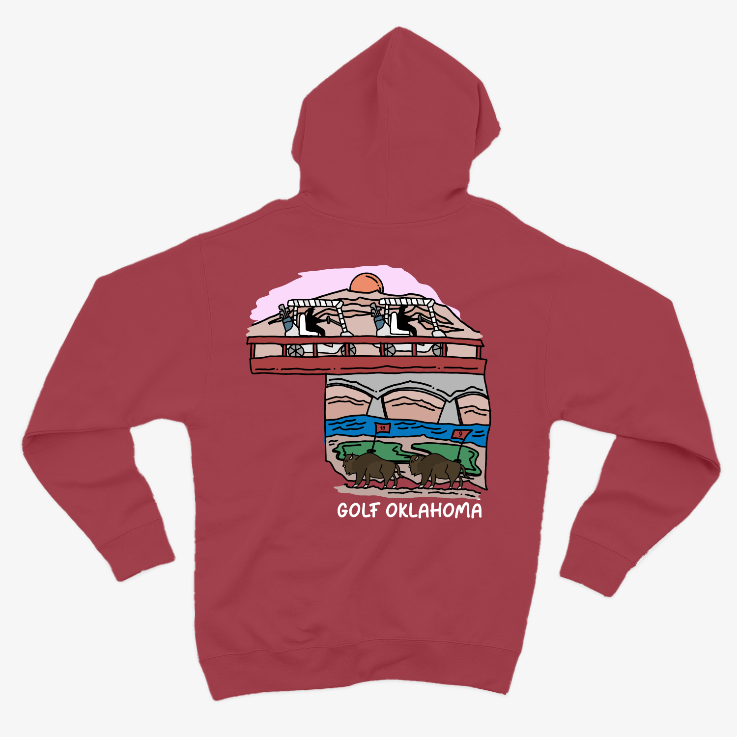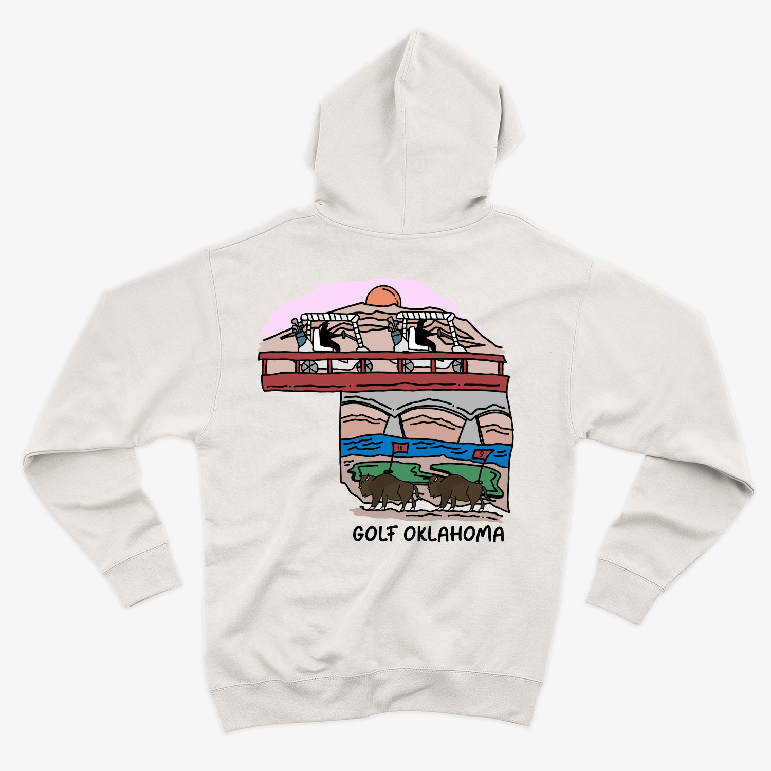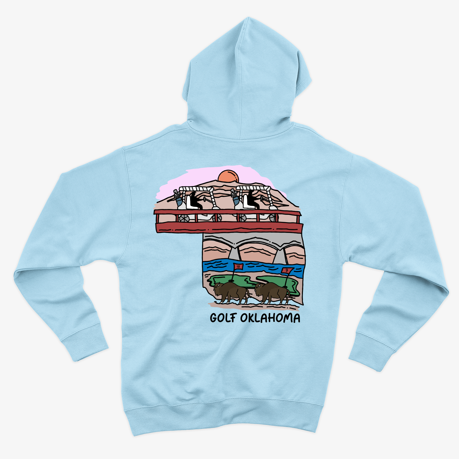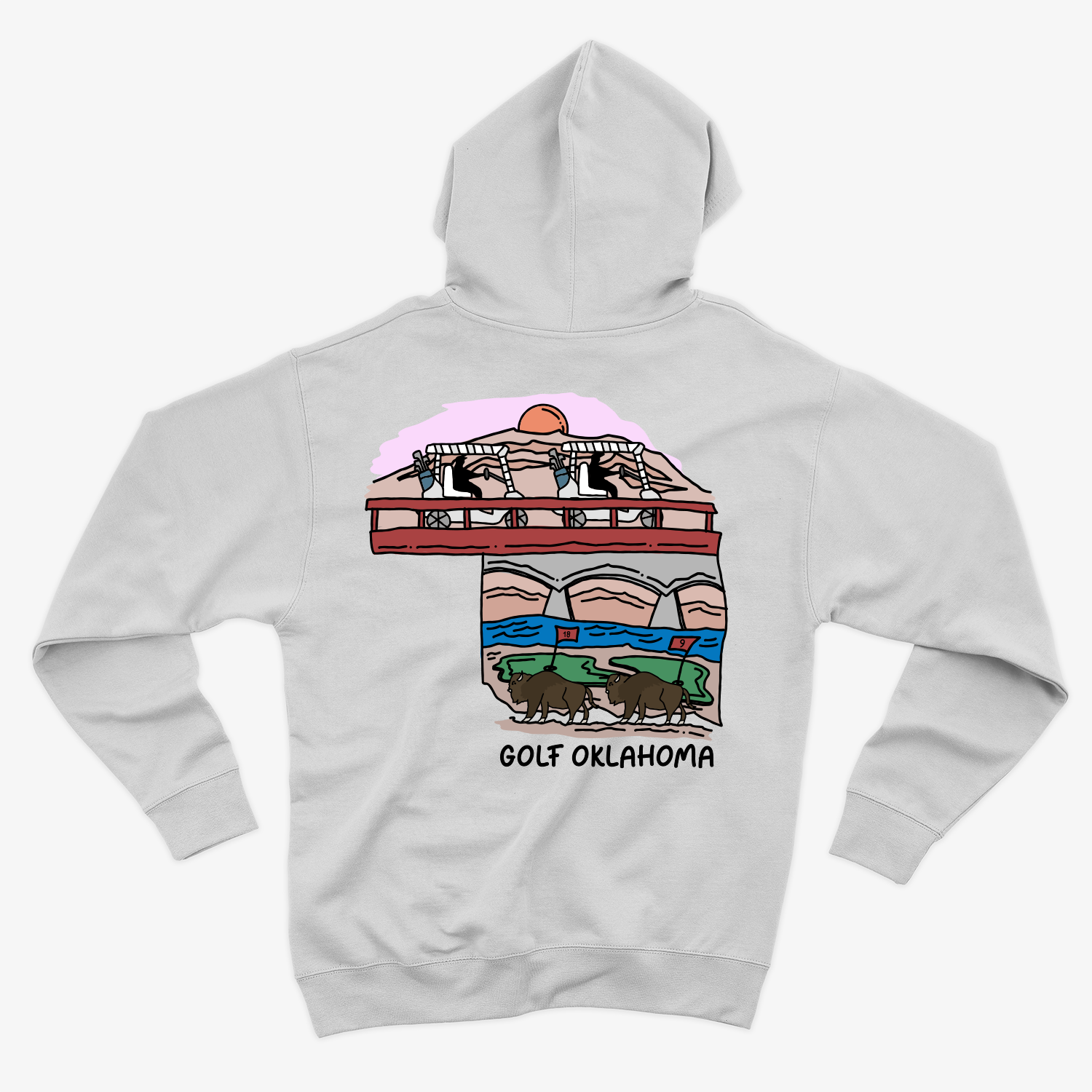 My Golf Oklahoma hoodie celebrates the state’s natural beauty, pairing its iconic silhouette with elements of Oklahoma’s landscapes. From sweeping plains to rugged hills, this hand-drawn design brings the outdoors to the fairway.