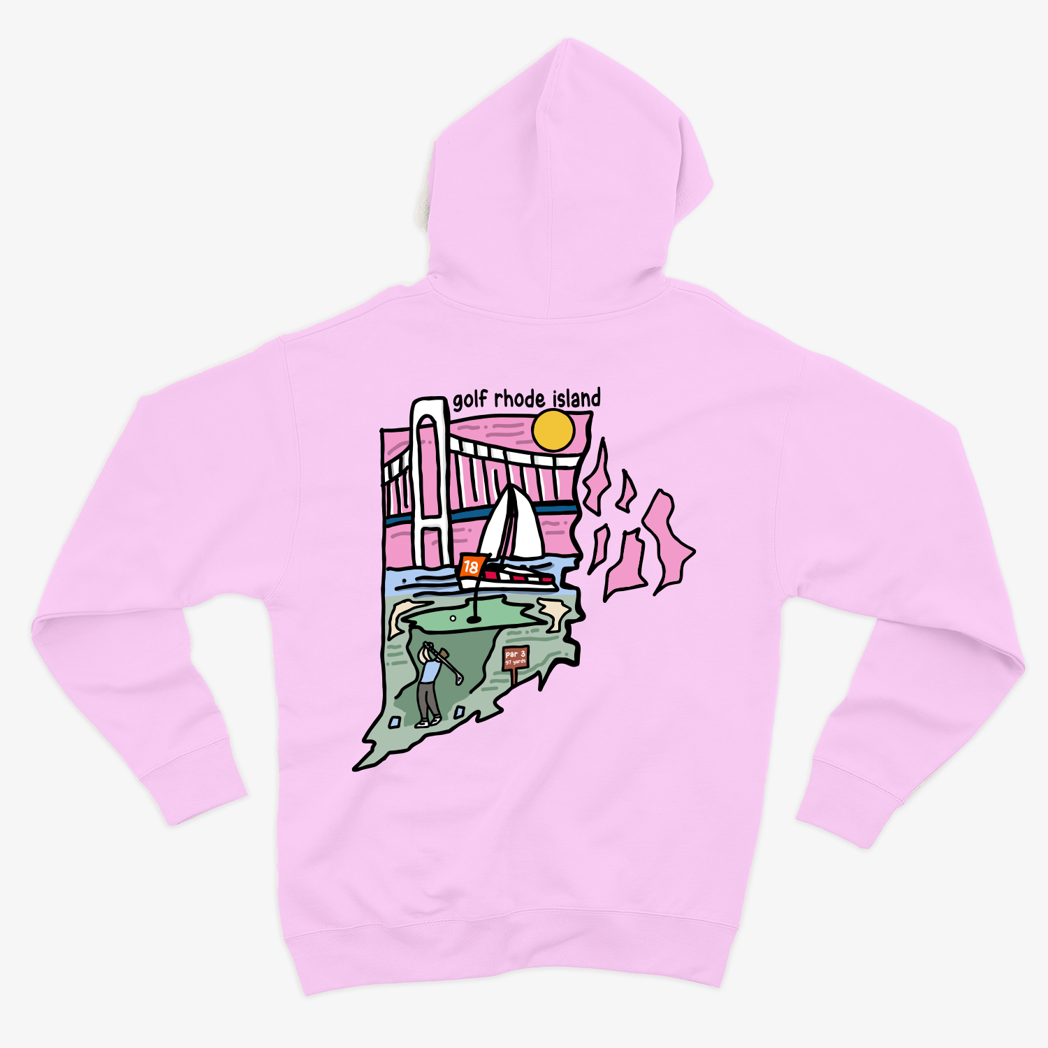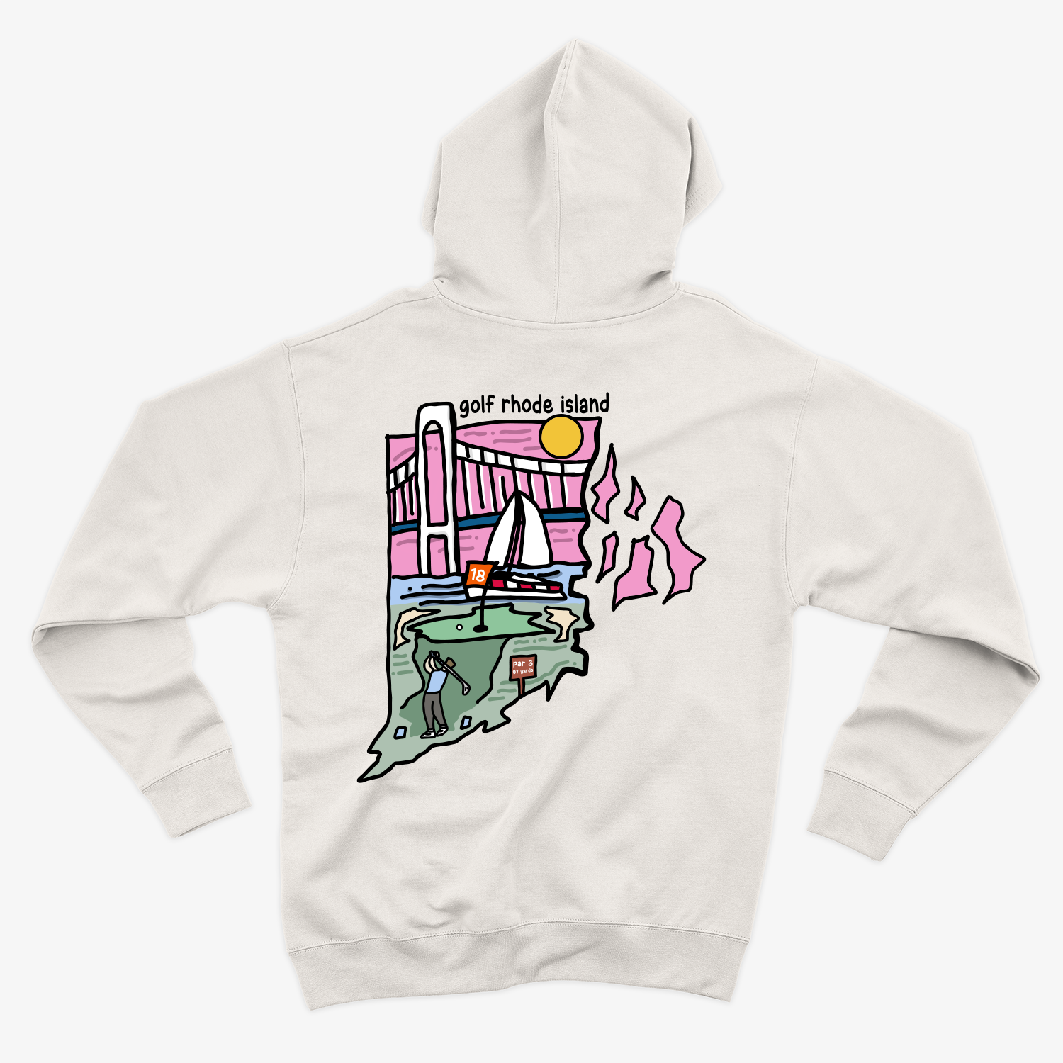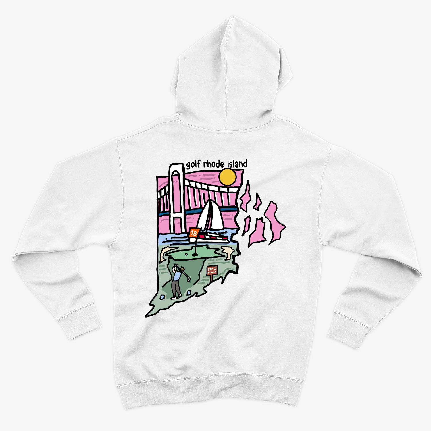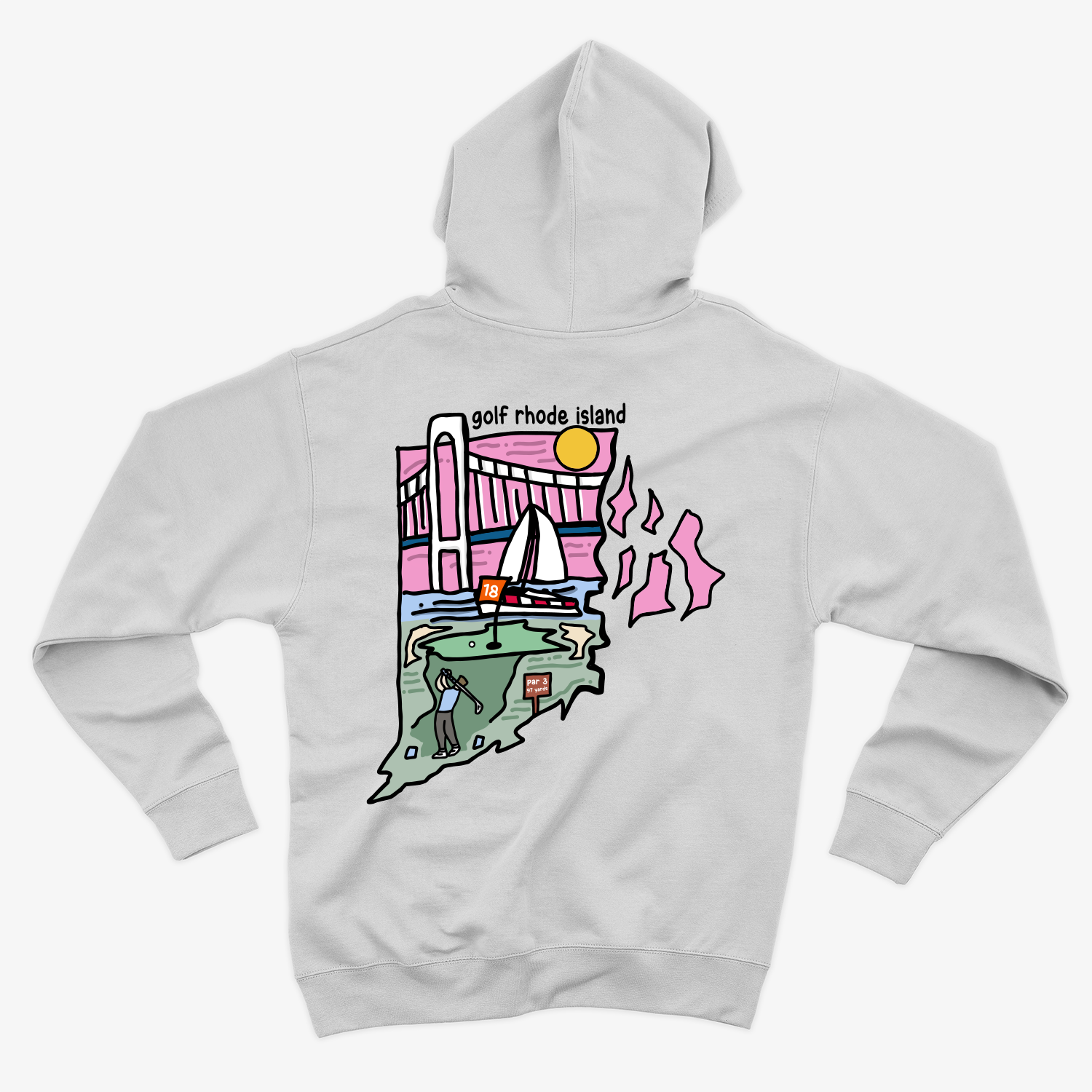 This design pulls inspiration straight from the Ocean State. Featuring the silhouette of one of Rhode Island’s iconic bridges alongside a classic sailboat drifting in the foreground, it captures the coastal charm and maritime feel of the state. A nod to both the state’s deep nautical roots and love for golf—this tee is for anyone who appreciates clean lines, quiet mornings on the water, and a well-played round.