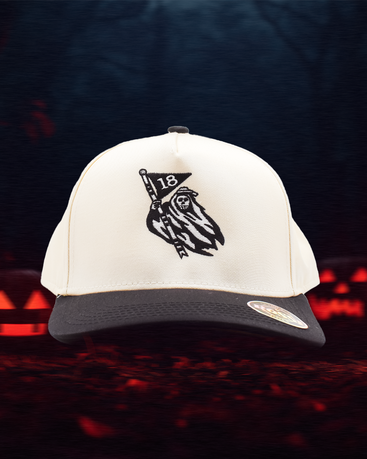 The Pin Reaper Snapback is made for those who hunt flags and play with no fear. Featuring a finely stitched, hand drawn reaper embroidery, it’s a nod to those who thrive under pressure and go for every pin. With a structured fit and adjustable snapback, it’s built for comfort, style, and the golfers who never lay up.